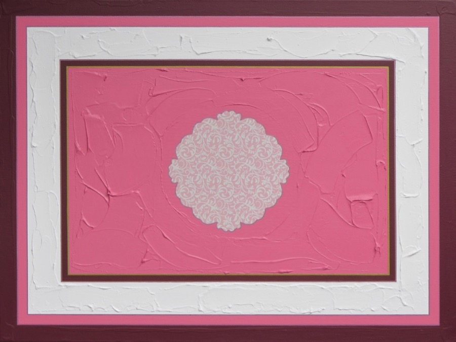 Fari and Varga Hosseini, Fertile Autumn, no. 2 (2017), synthetic polymer paint, texture paste, polyvinyl acetate, paper, and metallic marker on canvas, 75 cm X 100 cm, collection of the artists.