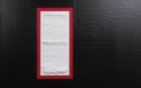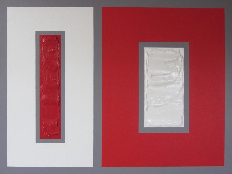 Fari and Varga Hosseini, Borders, Fences, We Get Defensive (Concrete Aesthetic) (2018), synthetic polymer paint, texture paste, and gloss varnish on canvas, 91.4 cm X 121.9 cm, collection of the artists.