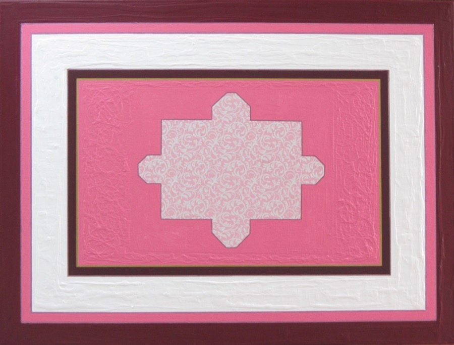Fari and Varga Hosseini, Pale Gold Path (2024), synthetic polymer paint, texture paste, and gloss varnish on canvas, 91.4 cm X 121.9 cm, collection of the artists.