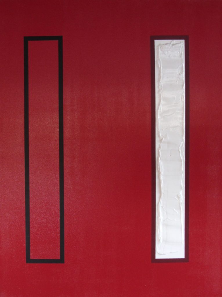 Fari and Varga Hosseini, The Trace (Identity Divided) (2019), synthetic polymer paint, texture paste, gloss and satin varnish on canvas, 91.4 cm X 121.9 cm, collection of the artists.