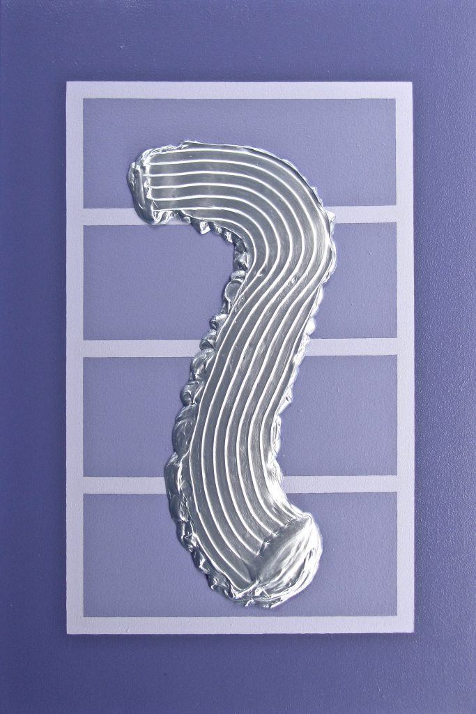 Fari and Varga Hosseini, Plush Astro Violet (2022), synthetic polymer paint, texture paste, gloss and satin varnish on canvas, 50.8 cm X 76.2 cm, collection of the artists.